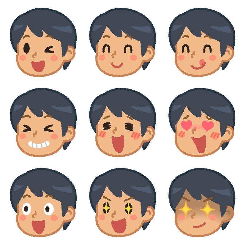 男性の色んな表情(笑顔) 笑っていたり喜んでいたりハート目だったり目を輝かせている男性の表情パーツです。 画像をダウンロード ご使用前にご利用規約とよくあるご質問を必ずお読みください。 SNSで共有クリックして Tumblr で共有 (新しいウィンドウで開きます)Facebook で共有するにはクリックしてください (新しいウィンドウで開きます)Click to share on Twitter (新しいウィンドウで開きます)クリックして WhatsApp で共有 (新しいウィンドウで開きます)クリックして Pinterest で共有 (新しいウィンドウで開きます) タグ パーツ男表情