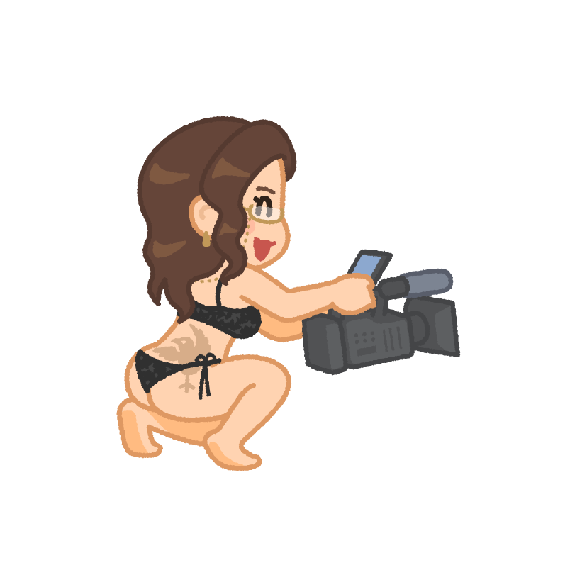 笑顔で奥側にカメラを構えている下着姿のAV監督、鈴木リズのエロストです。
